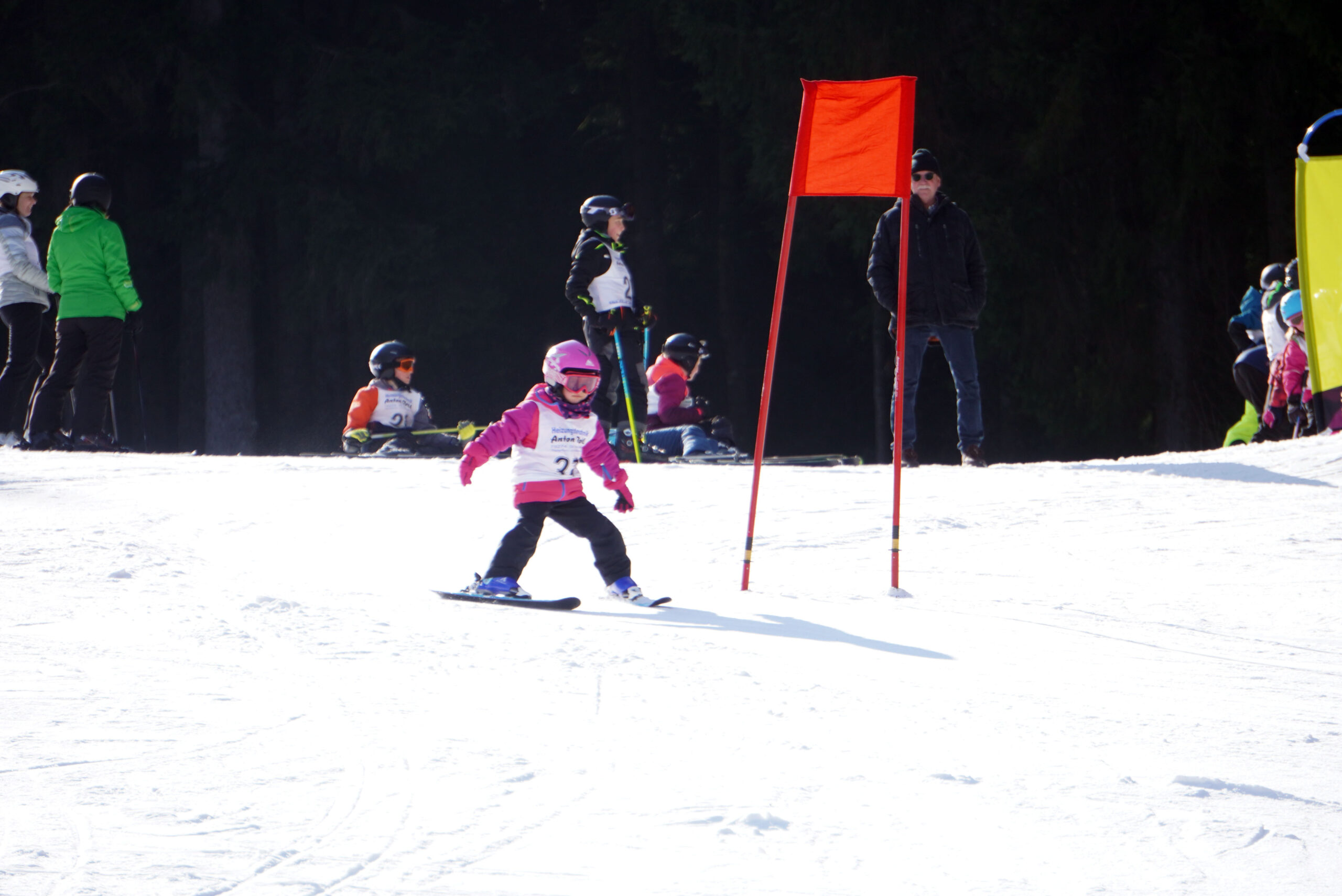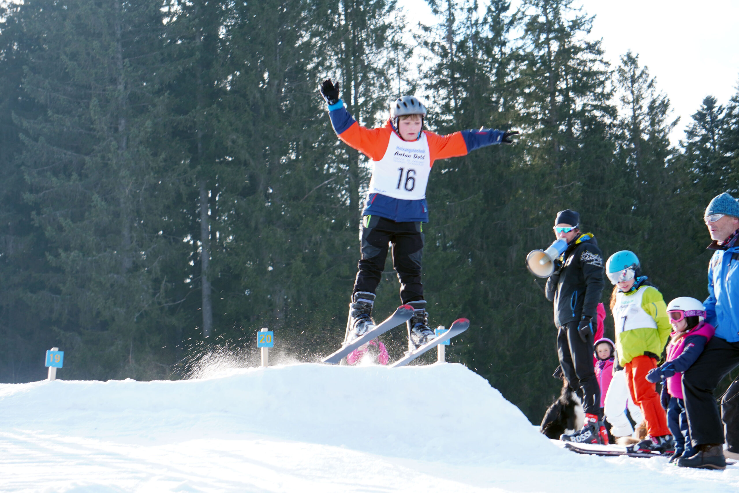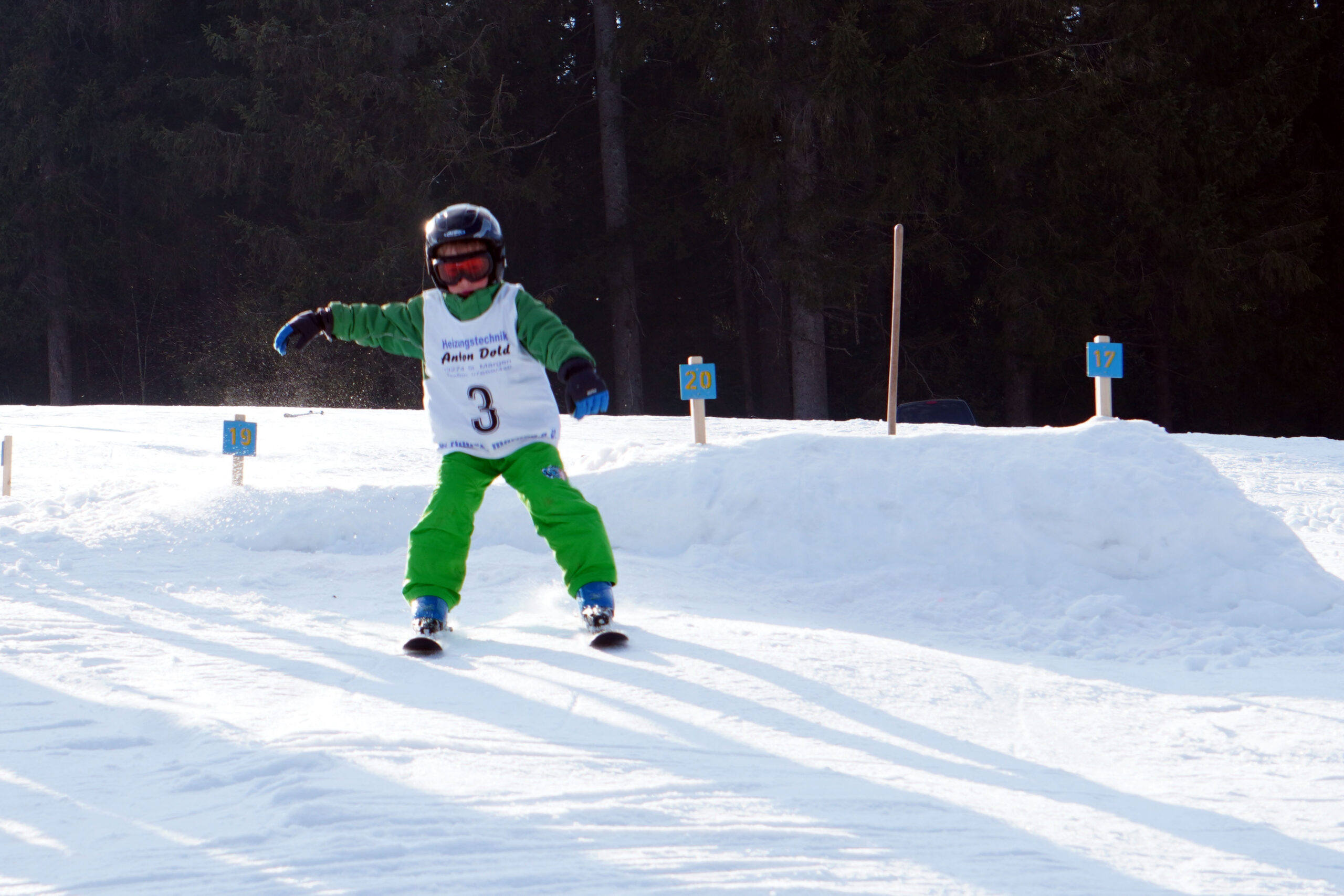 Bei Sonnenschein, kaltem Ostwind und eisiger Piste gingen für den Torlauf 24 Kinder und 6 Erwachsene an den Start. Beim anschließenden Springen gaben 16 Kinder ihr Bestes. Es war ein gelungener Wettkampf und alle hatten viel Spaß!