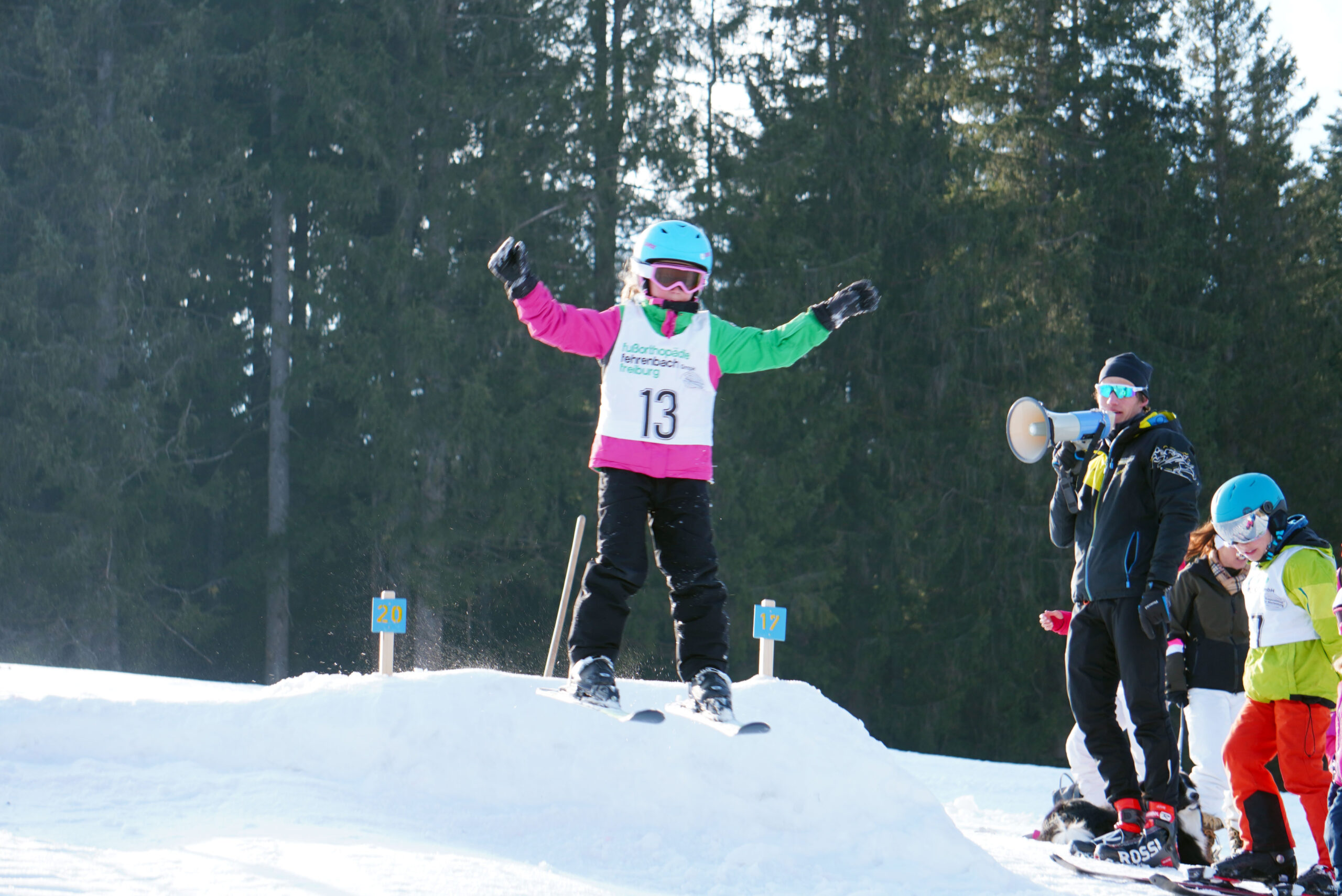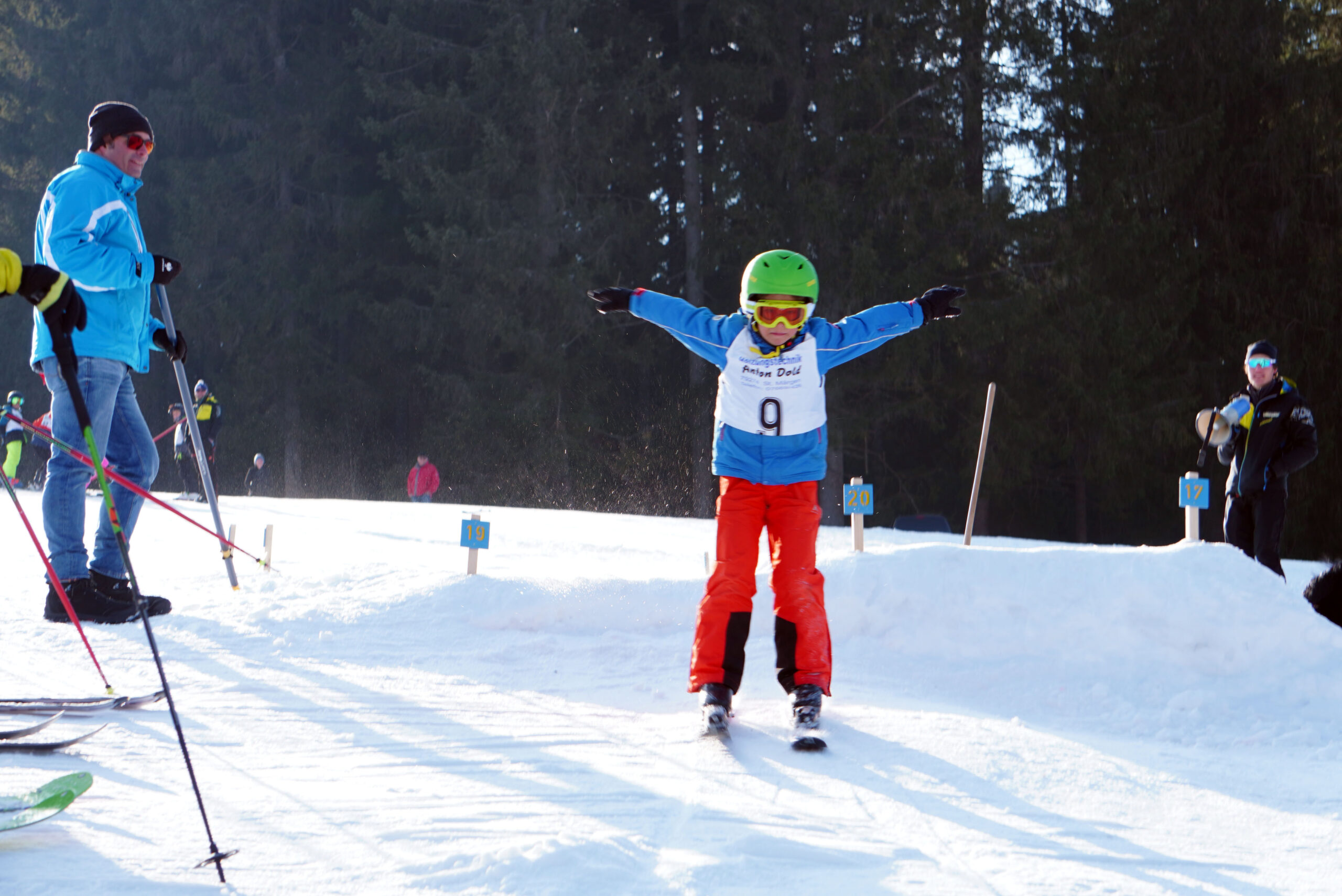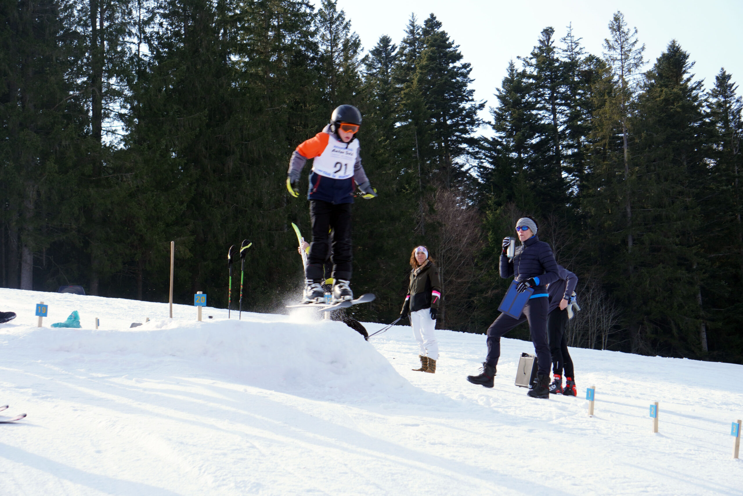 Bei Sonnenschein, kaltem Ostwind und eisiger Piste gingen für den Torlauf 24 Kinder und 6 Erwachsene an den Start. Beim anschließenden Springen gaben 16 Kinder ihr Bestes. Es war ein gelungener Wettkampf und alle hatten viel Spaß!