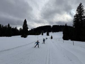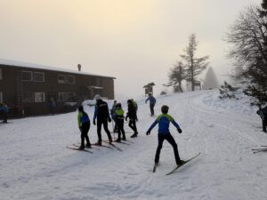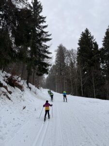 Am Sonntag machte uns das Wetter einen Strich durch die Rechnung: Regen statt Schnee. Doch kein Problem – die Frühsport- und Vormittagseinheiten wurden kurzerhand in die Halle verlegt. Nach dem Mittagessen ging es noch für eine kurze Einheit auf die Loipe am Leistungszentrum, bevor die Abfahrt in zwei Gruppen erfolgte: eine über die Piste, die andere über den Fahrweg.
