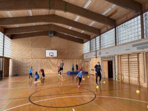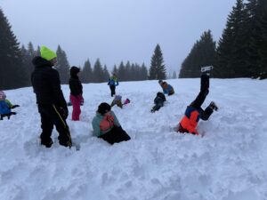 Nach dem Mittagessen und einer kurzen Pause ging es um 14:30 Uhr wieder auf die Ski. Der Abend endete mit einer Trainer-, Eltern- und Kinder-Olympiade in der Turnhalle – hier waren Schnelligkeit, Geschicklichkeit, Kraft und Teamgeist gefragt.