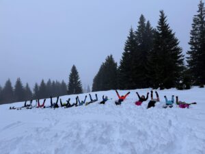 Der Tag begann um 7:15 Uhr mit Frühsport im Tiefschnee – Spiel und Spaß inklusive. Nach einem ausgiebigen Frühstück stießen weitere Teilnehmer dazu. Gemeinsam ging es dann zum Gipfel des Herzogenhorns. Auch wenn uns die Alpensicht wegen Nebel verwehrt blieb, war die Stimmung großartig!
